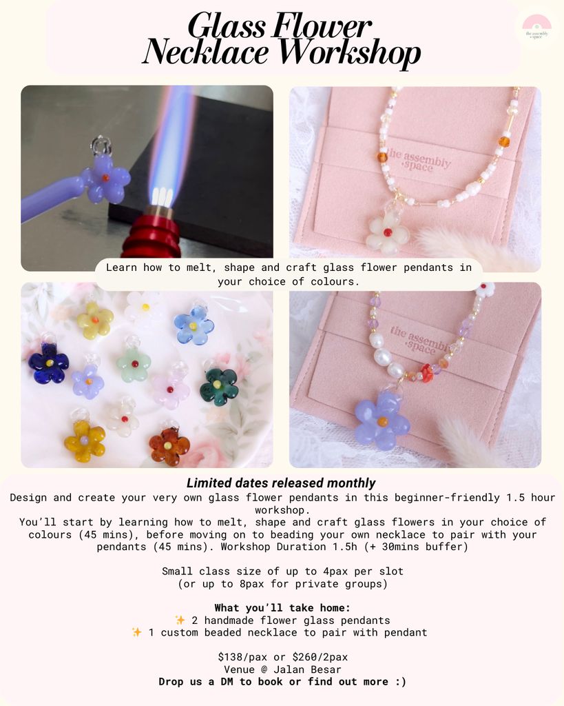 (1) Glass flower necklace workshop (2h, $138/pax or $260/2pax)